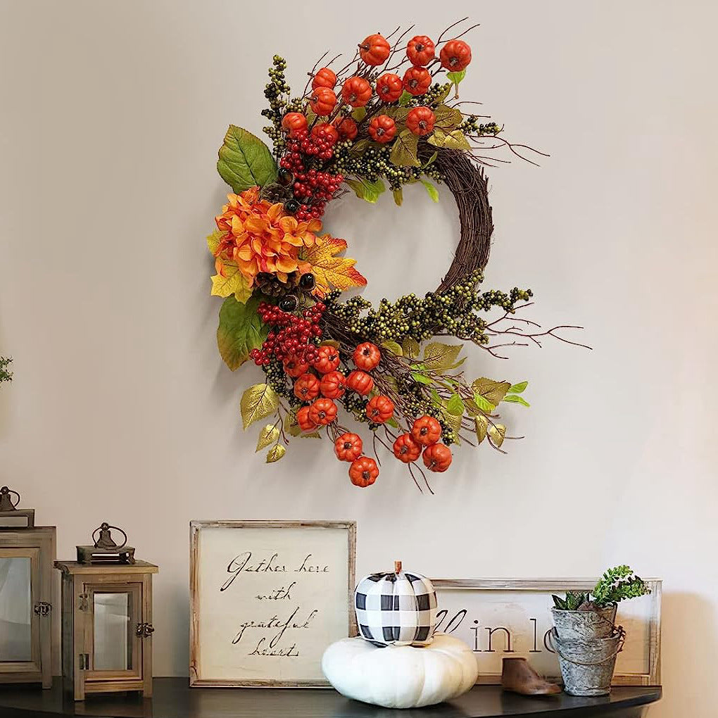 Farship 24" Length Fall Wreath for Front Door with Mini Pumpkins